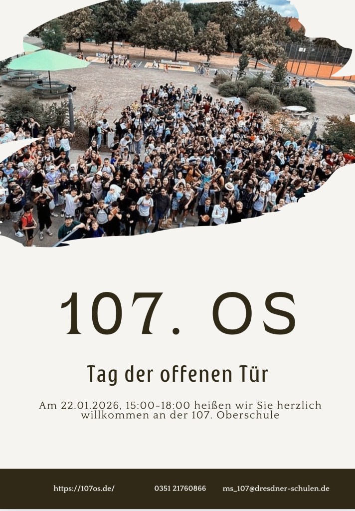 Mit den Halbjahresinformationen und dem Beginn der Winterferien beginnt wieder der Anmeldezeitraum der jetzigen Schülerinnen und Schüler der Klasse 4 an weiterführende Schulen. An welchen Tagen und zu welchen Zeiten die Anmeldung an der 107. Oberschule für Sie genau möglich ist und welche Unterlagen benötigt werden, erfahren Sie auf unserer Informationsseite zum Aufnahmeverfahren (bitte hier klicken). Informationen zur Schulart Oberschule sowie erste und wichtige Eindrücke über unsere Schule können Sie der Präsentation unserer Schule (bitte hier klicken) entnehmen.