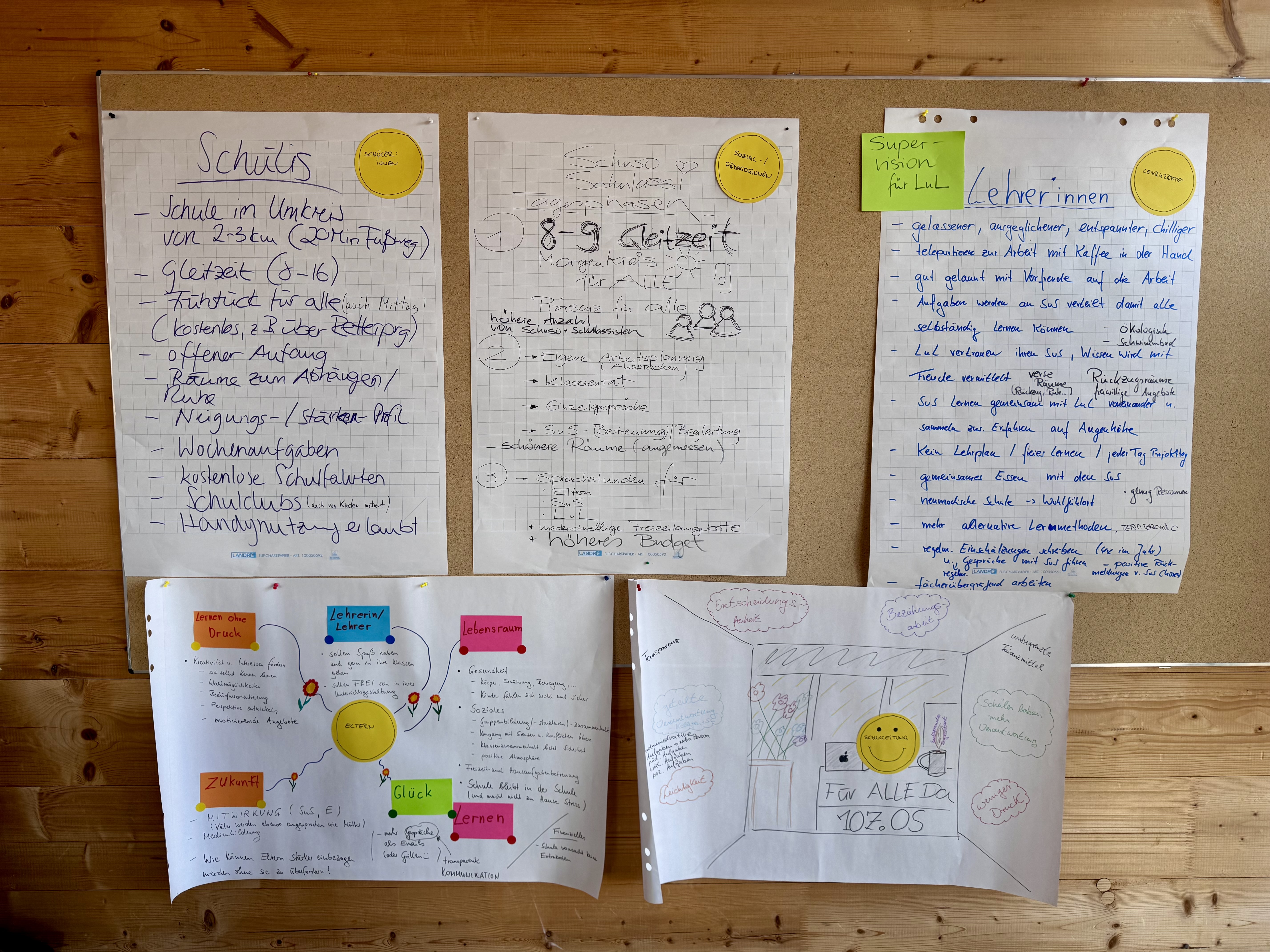 In intensiven Arbeitsphasen setzten sich die Teilnehmenden mit zukünftigen Anforderungen an Lernen, Schule und Zusammenleben auseinander. Dabei wurden Perspektiven der Schülerinnen und Schüler bewusst einbezogen und mit den Erfahrungen des Wandelteams zusammengeführt. In einem kreativen und dialogorientierten Arbeitsprozess entstanden erste Entwürfe einer gemeinsamen Vision für die Schule sowie zentrale Entwicklungsziele für die kommenden Jahre.
