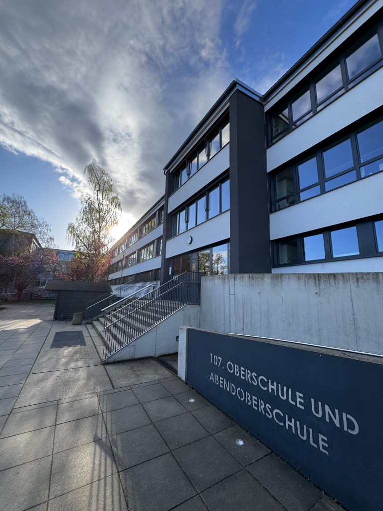 Die 107. Oberschule Dresden wurde nach umfassender Sanierung im Jahr 2012 wiedereröffnet. Gleichzeitig entstand eine moderne Dreifelder-Turnhalle, die ebenfalls im Jahr 2012 eingeweiht wurde. Unser Schulgebäude steht in der architektonischen Tradition des „Dresden Atrium“-Baustils und verbindet funktionale Lernräume mit heller, offener Gestaltung.