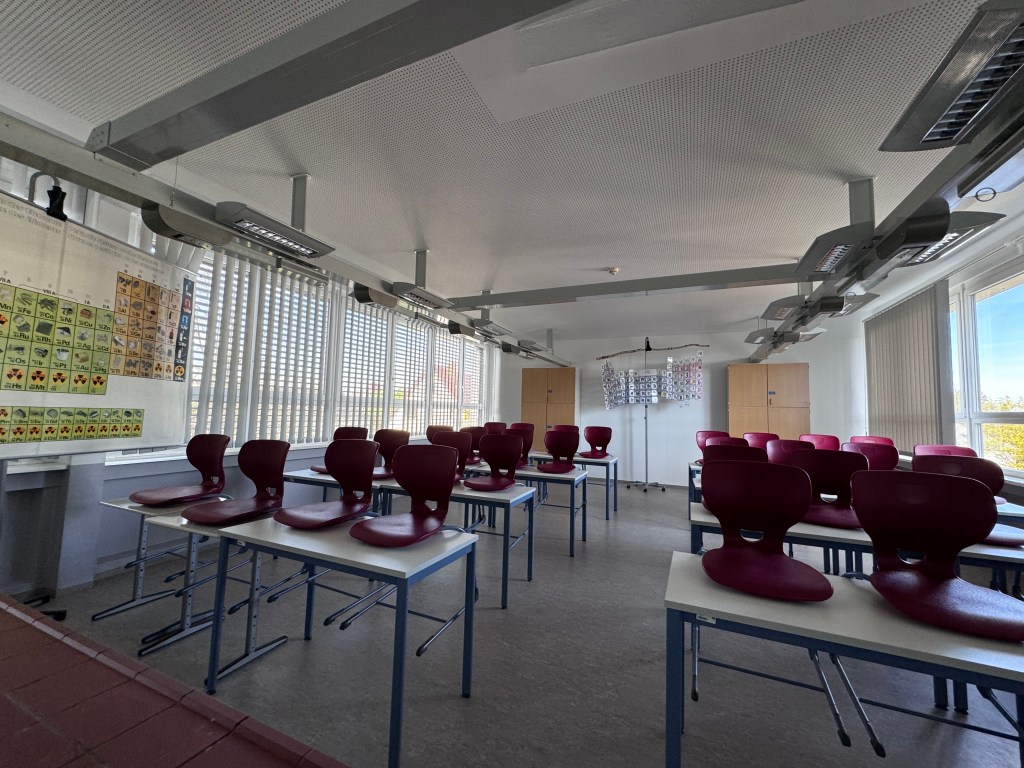 Alle Unterrichtsräume sind neben einer klassischen Tafel mit einem digitalen Display ausgestattet. Die Fachräume für Biologie, Physik, Chemie und Musik verfügen zusätzlich über ein interaktives Smartboard.