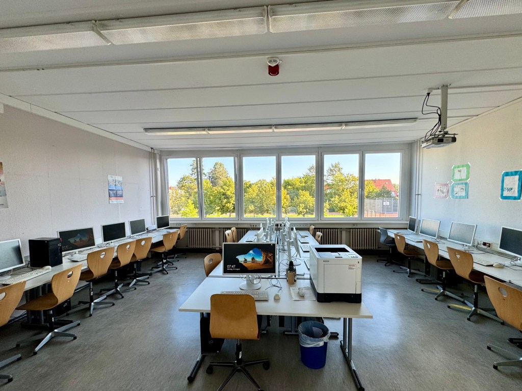 In den beiden PC-Kabinetten stehen moderne Computerarbeitsplätze sowie Beamer und Leinwand für mediengestützten Unterricht zur Verfügung.
